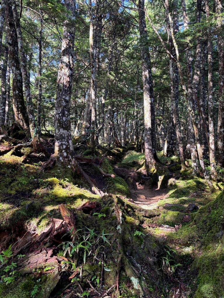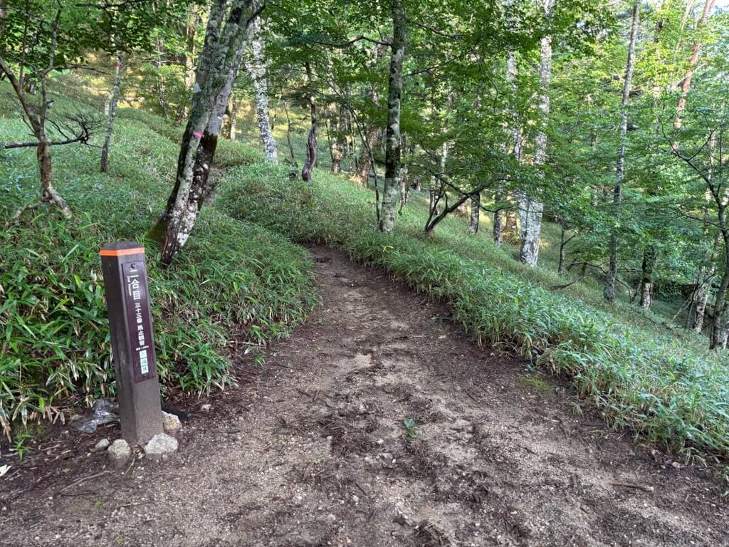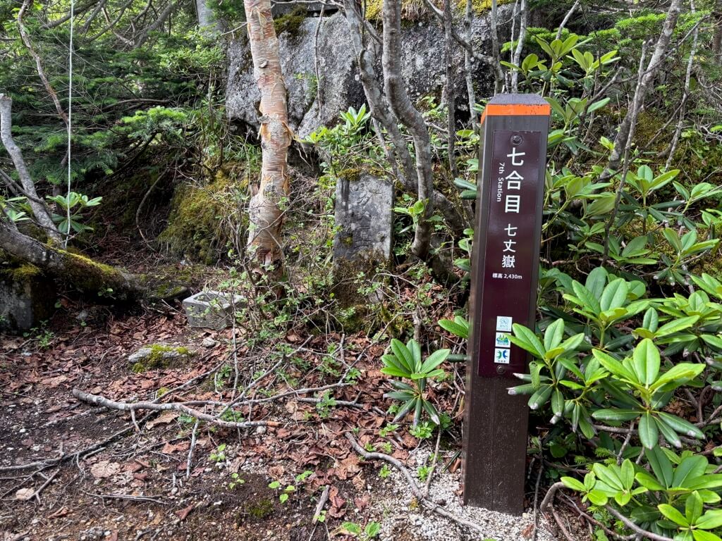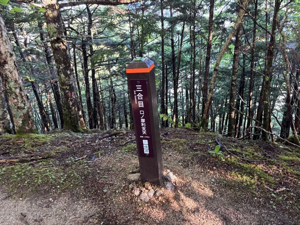 ただ標高が上がってきて空気が冷たくなり、時折木々の間から風が流れてくるようになったので、歩いていても涼しさを感じるようになりました。そのお陰でだいぶ元気が復活し、6時50分には標高1900mの三合目に到着しました。