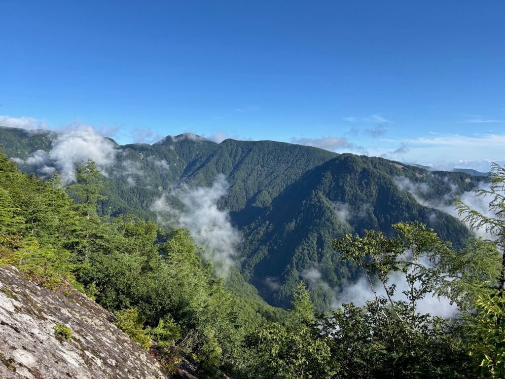 見晴らしの良い箇所もあり、青空の下に緑の山を見渡すことができました。