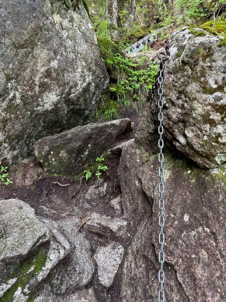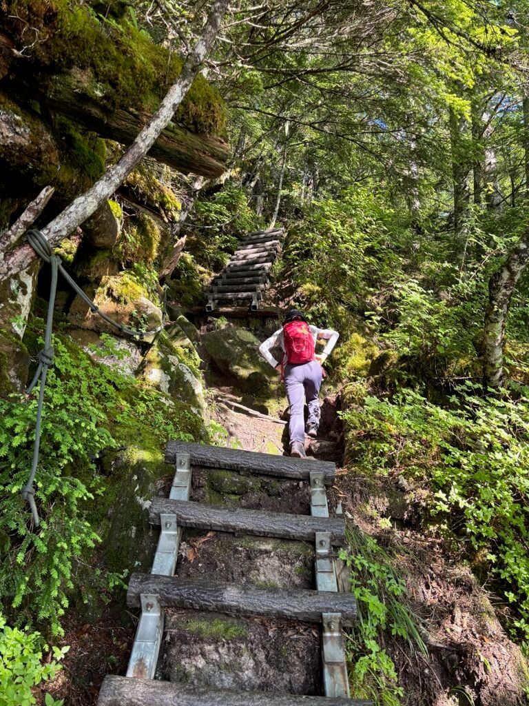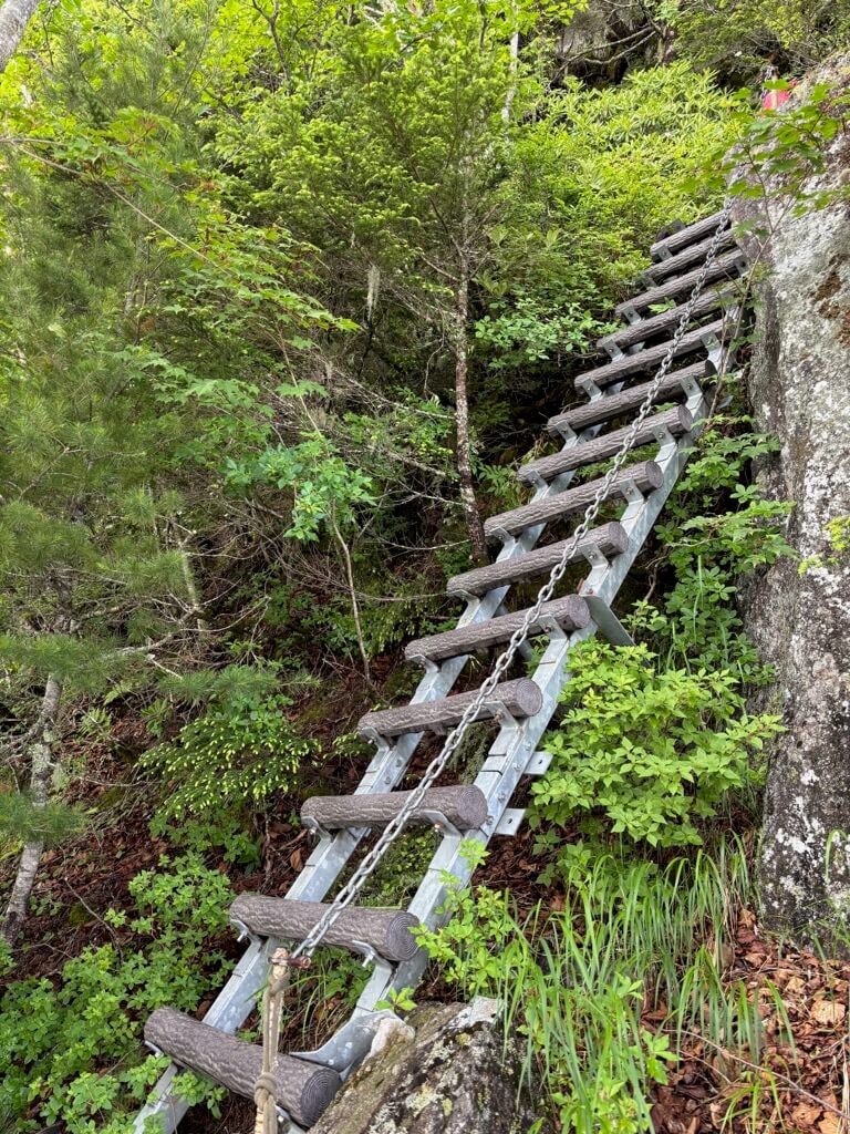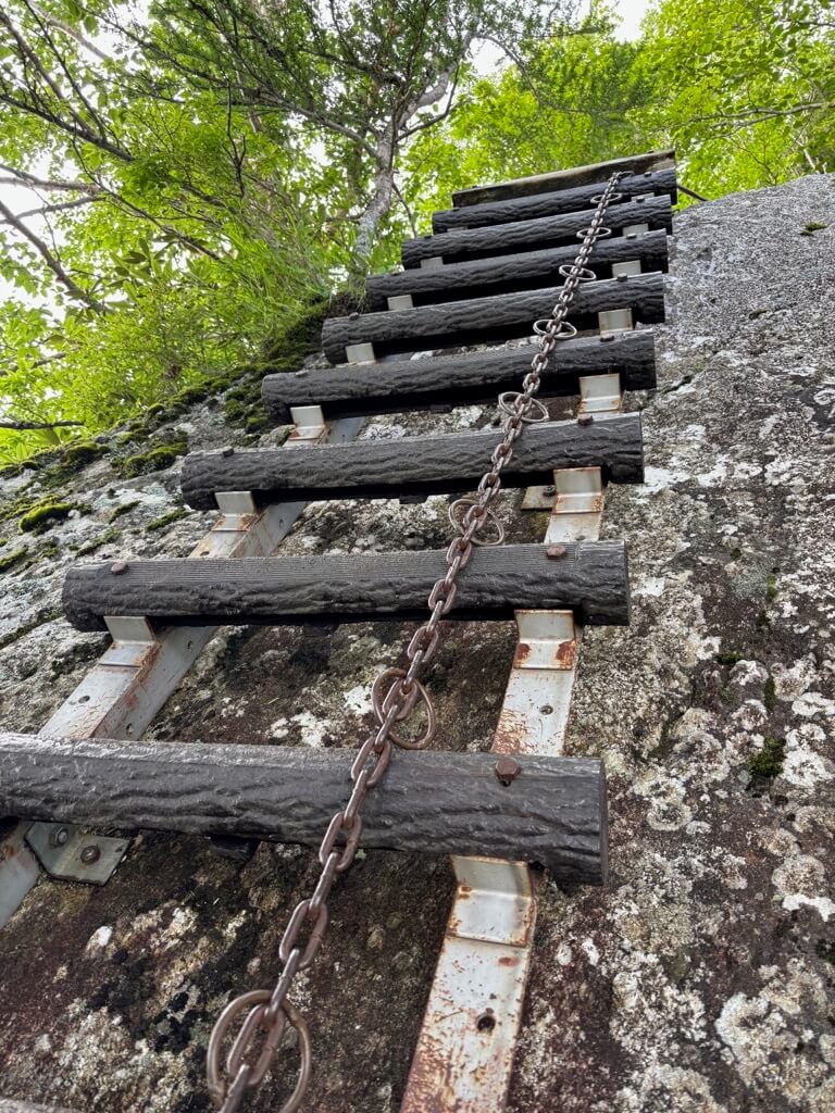 三合目を越えると岩場やはしごが出てきます。