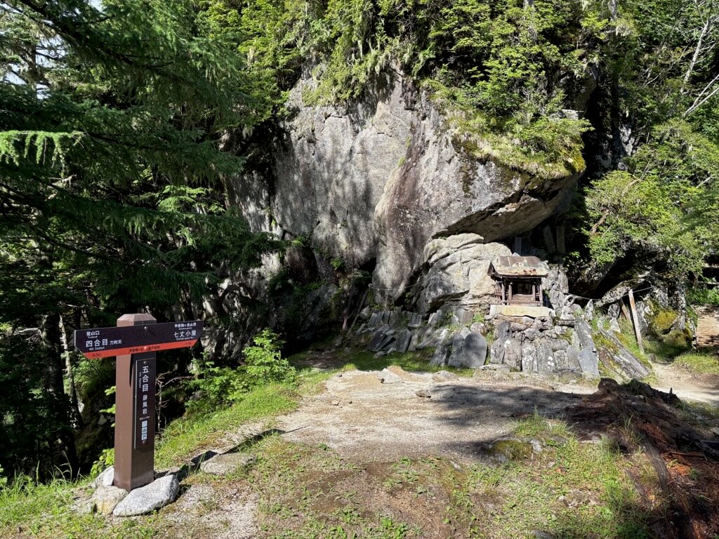 7時50分に五合目に到着。この先ははしごと鎖が連続する急登になります。