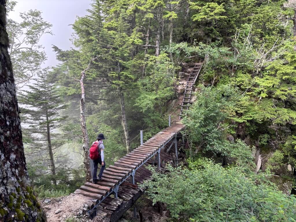 黒戸尾根は鎖場やはしごもあるので、岩場の技術が必要です。また距離も長いので体力の必須。途中の「七丈小屋」で一泊をすれば余裕をもって登れます。