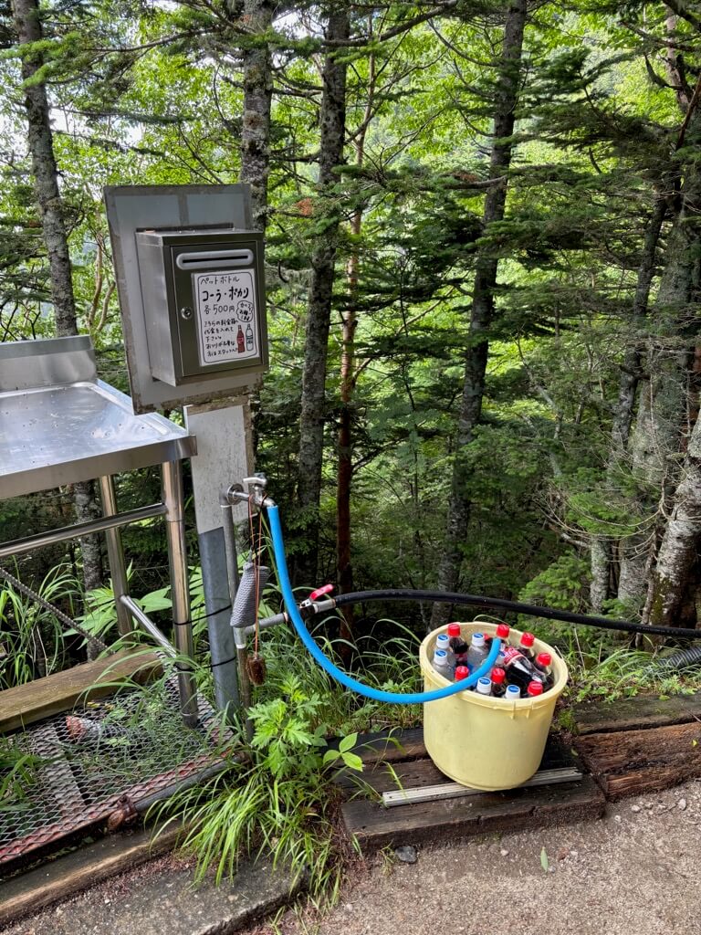 水とポカリスエットを七丈小屋で購入し、ここに小屋があって本当によかったと思いました。