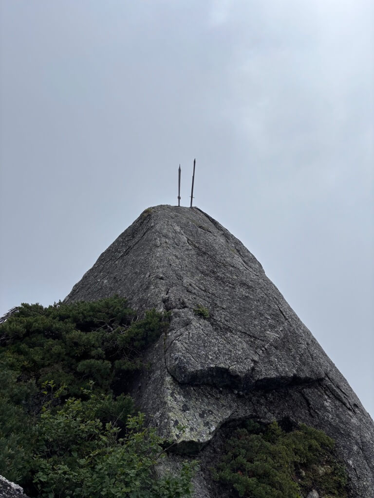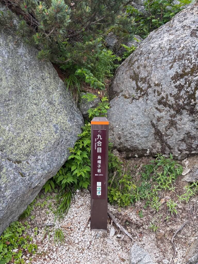 八合目から先は岩場の連続です。鎖場も何度も出てくるため、ハイステップで足をあげなきゃいけないところがたくさんあります。いつもは大好きな岩場が、足の疲労でなかなか進みません。足を上げるめんどくさい〜。