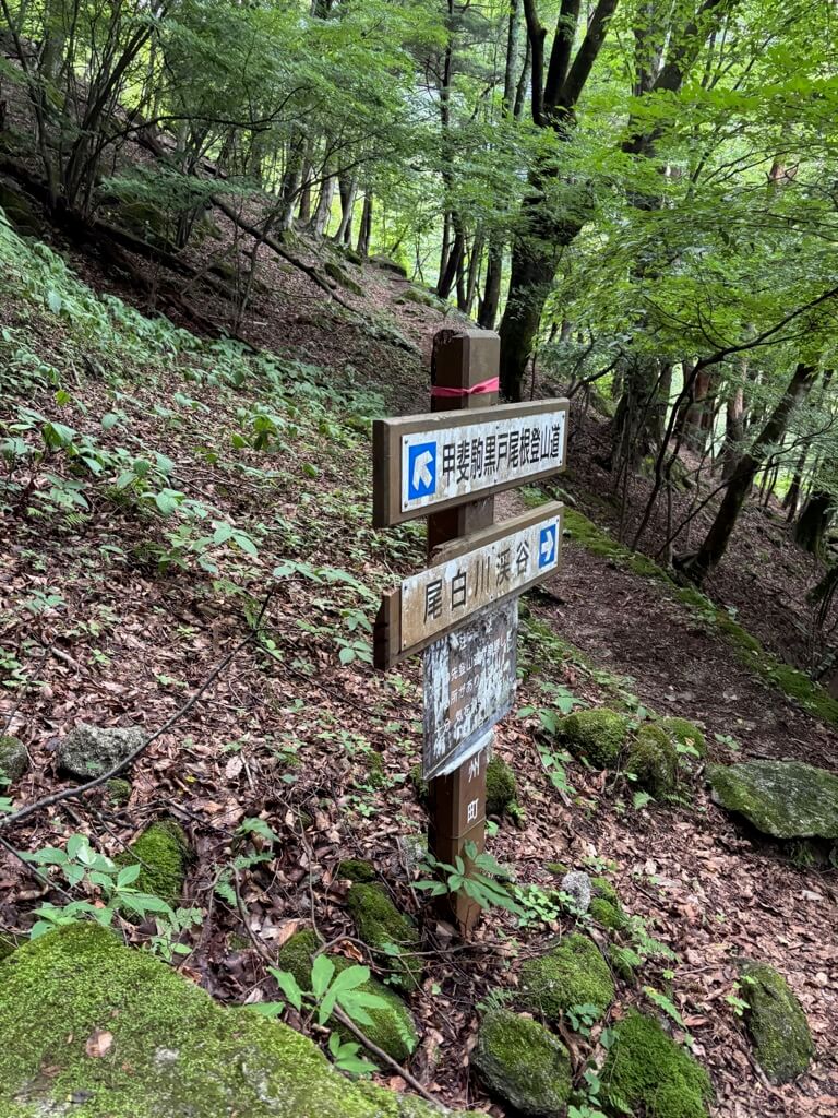 尾白川渓谷駐車場で前泊し、早朝から登山スタート