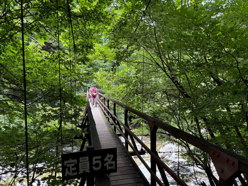 身支度を整え、ご飯を軽く食べて、4時にいよいよ登山スタートです。辺りは真っ暗、ヘッドランプをつけて「竹宇駒ケ岳神」の横から、尾白川渓谷をにかかる橋を渡り、黒戸尾根を登り始めます。