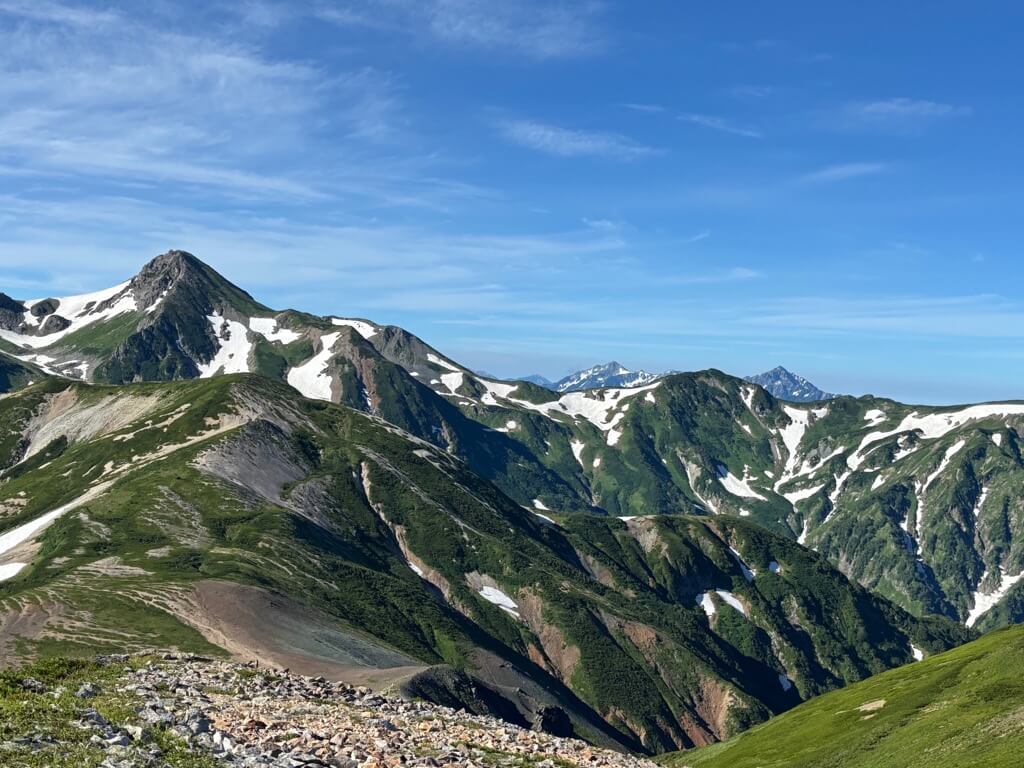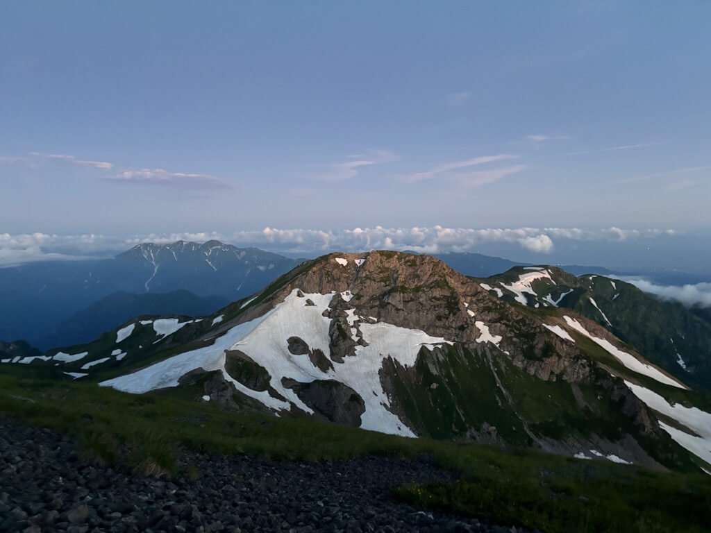 白馬岳と朝日岳の間に位置し遠くに剱岳、火打妙高、富山湾も眺められる絶景の山です。訪れる人も多くないので静かな山歩きが楽しめるのも魅力。
