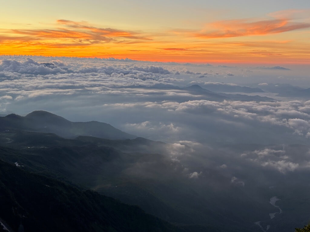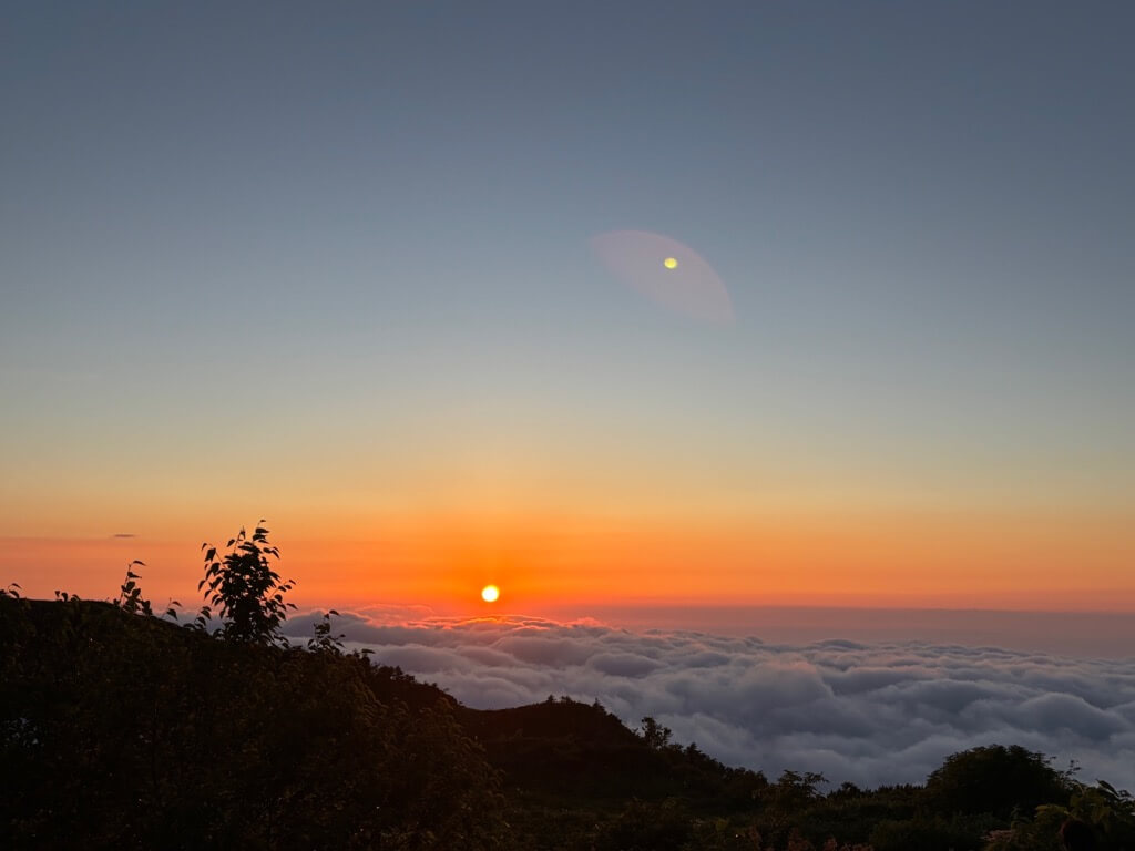 歩いている最中に、雲海の向こうから朝日が昇ってきました。