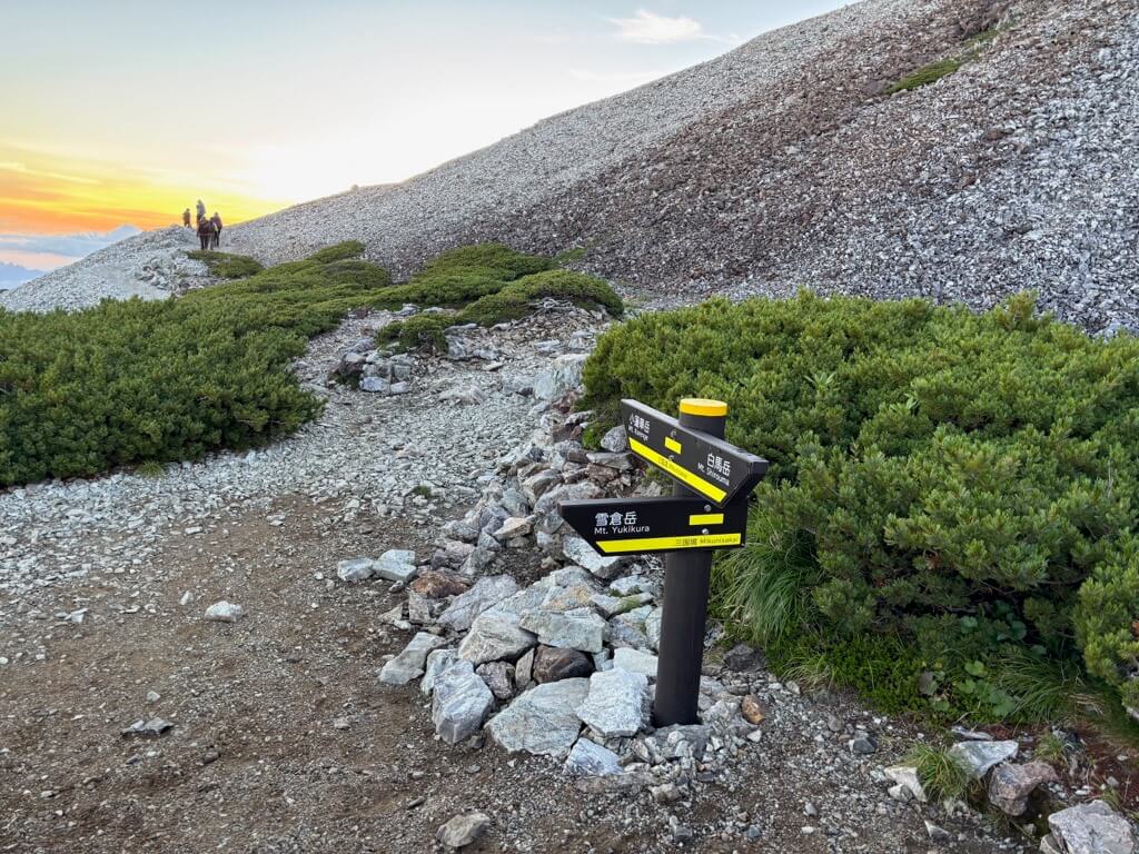 朝日小屋まで、あと1時間ちょっとのところ。朝日岳に直登するルートと、朝日小屋に行くルートの分岐点にきました。