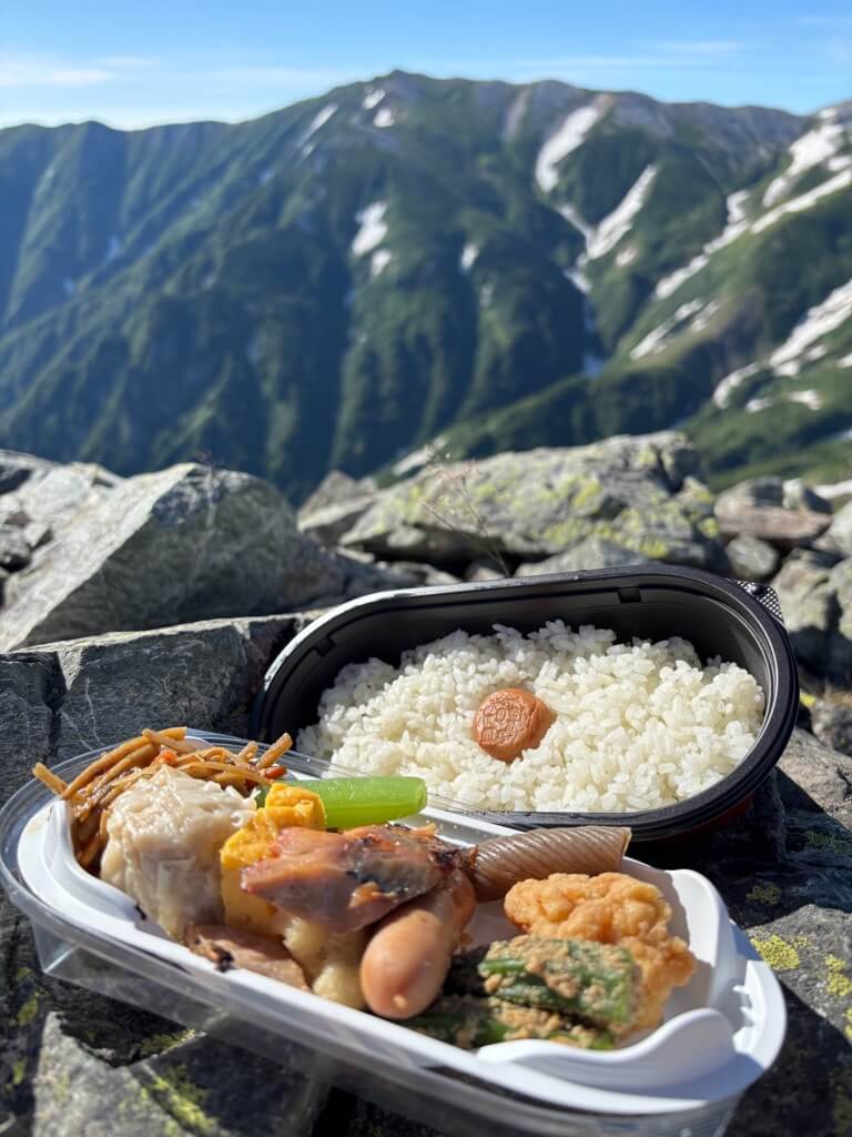 360度の大絶景!雪倉岳と頂上宿舎のお弁当