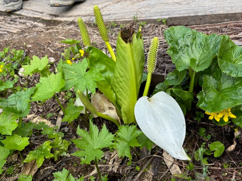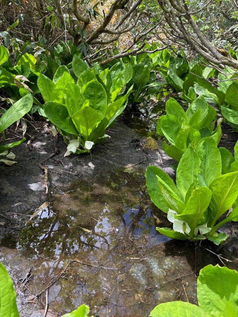 かなり葉が大きくなっていましたが、足元にはミズバショウもまだたくさん咲いています。