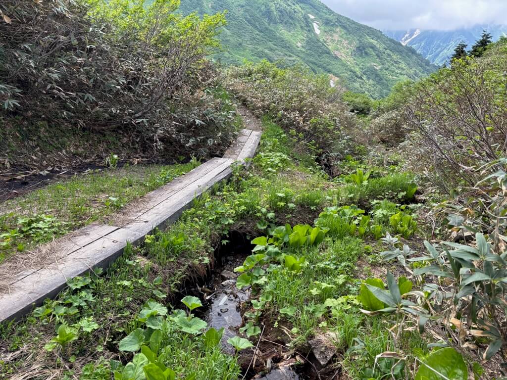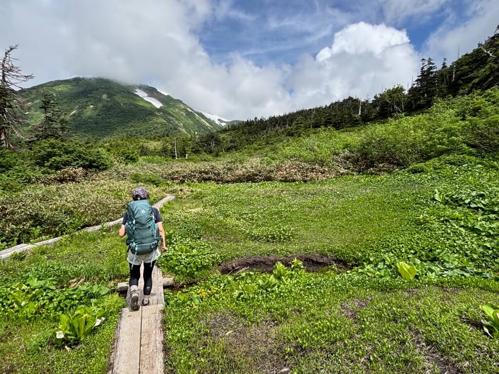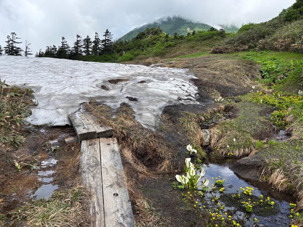 途中には、ミズバショウや、キヌガサソウの群生地など、お花の見どころもたくさんあります。