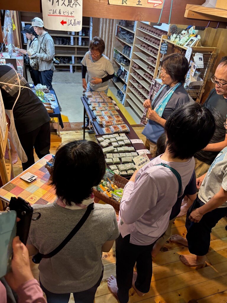 売り出し直前から、みんな並んでます。机が出てきて、お寿司や混ぜご飯が置かれます。売り切れちゃうときもあるそうなので、早めに並ぶことをおすすめします。