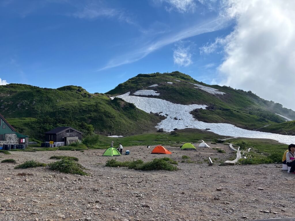 私達より先に着いていたの2組で、1人はテントでした。誰もいないテント場。今ならテントを好きな場所にたてられます。
