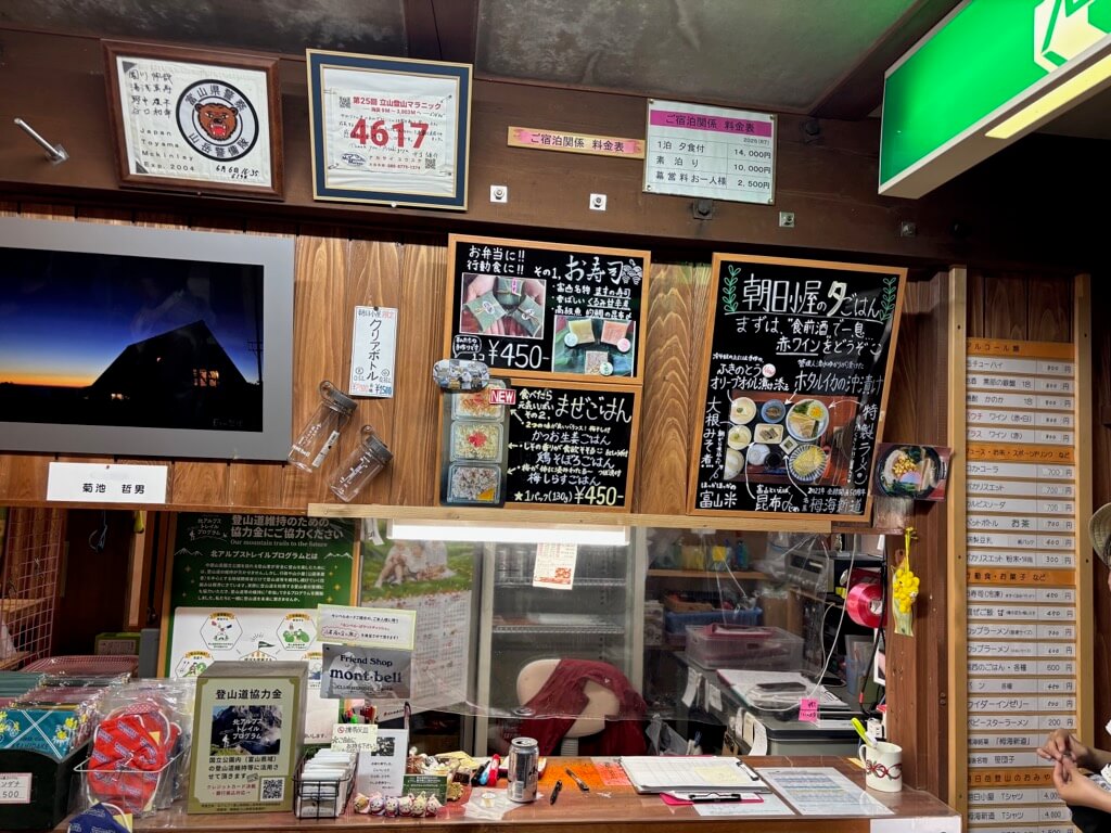 収容人数50人程度。朝ご飯はなく、お弁当(笹寿、混ぜご飯)を買うスタイルになります。昆布締めやホタルイカなど富山の名物やラーメンなどが出る美味しいご飯と、チャキチャキとした女将さんで有名な、人気の山小屋です。3時までに小屋に着かないと怒られますので、綿密にスケジューリングしてくださいw