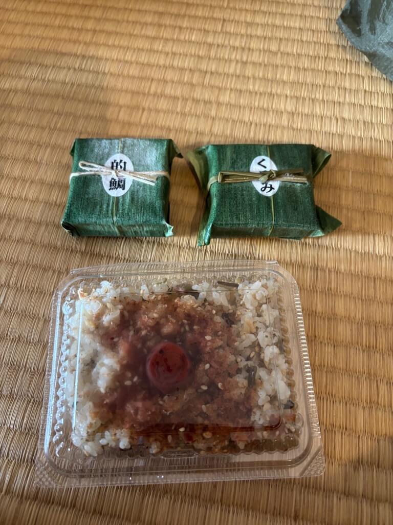 鯛寿司、くるみ寿司、かつお生姜の混ぜご飯を購入