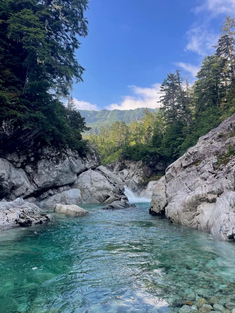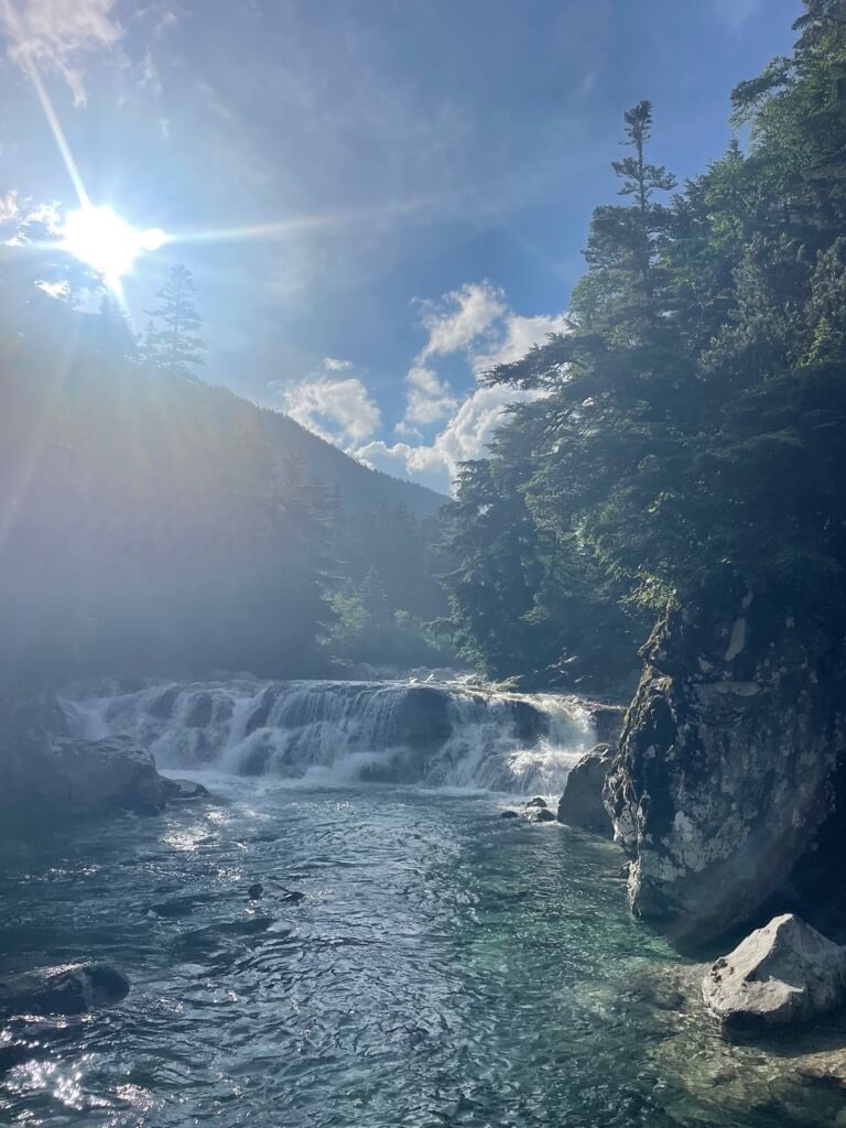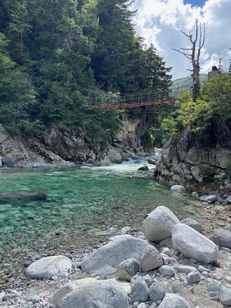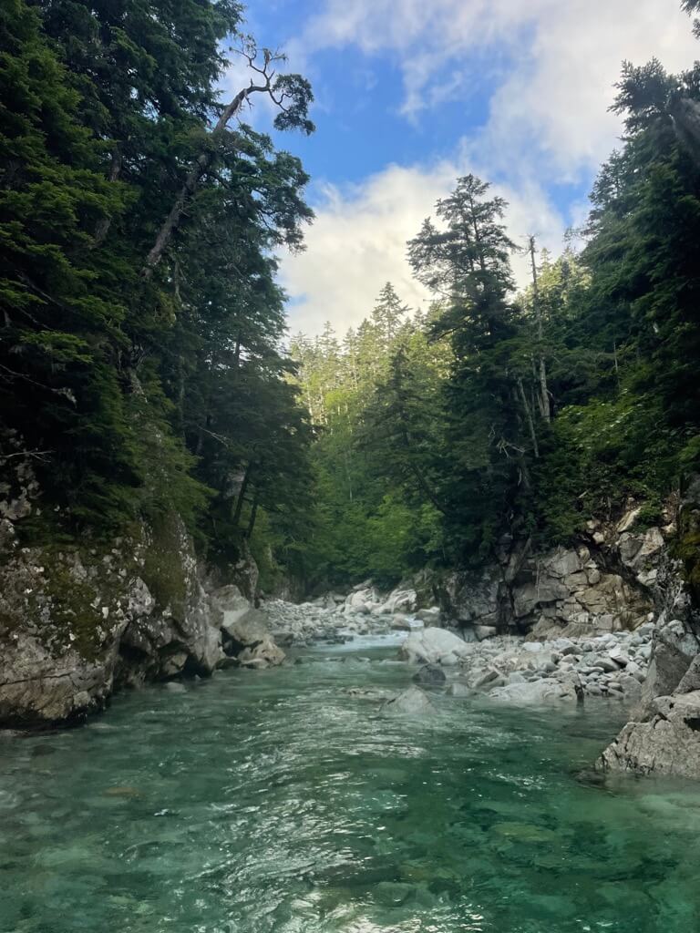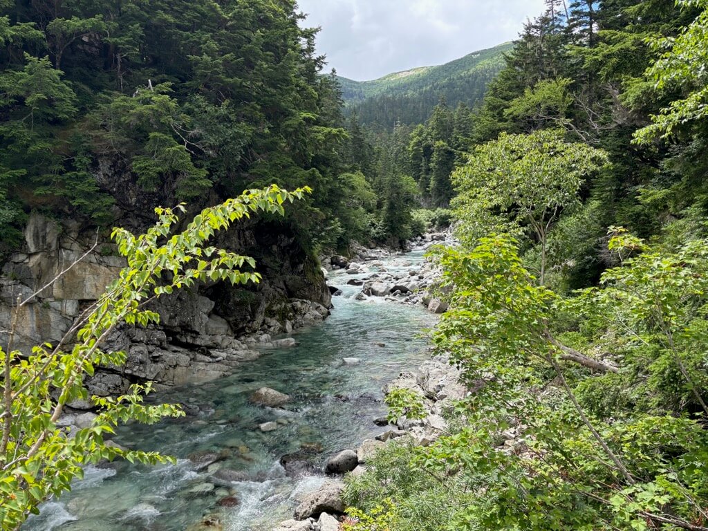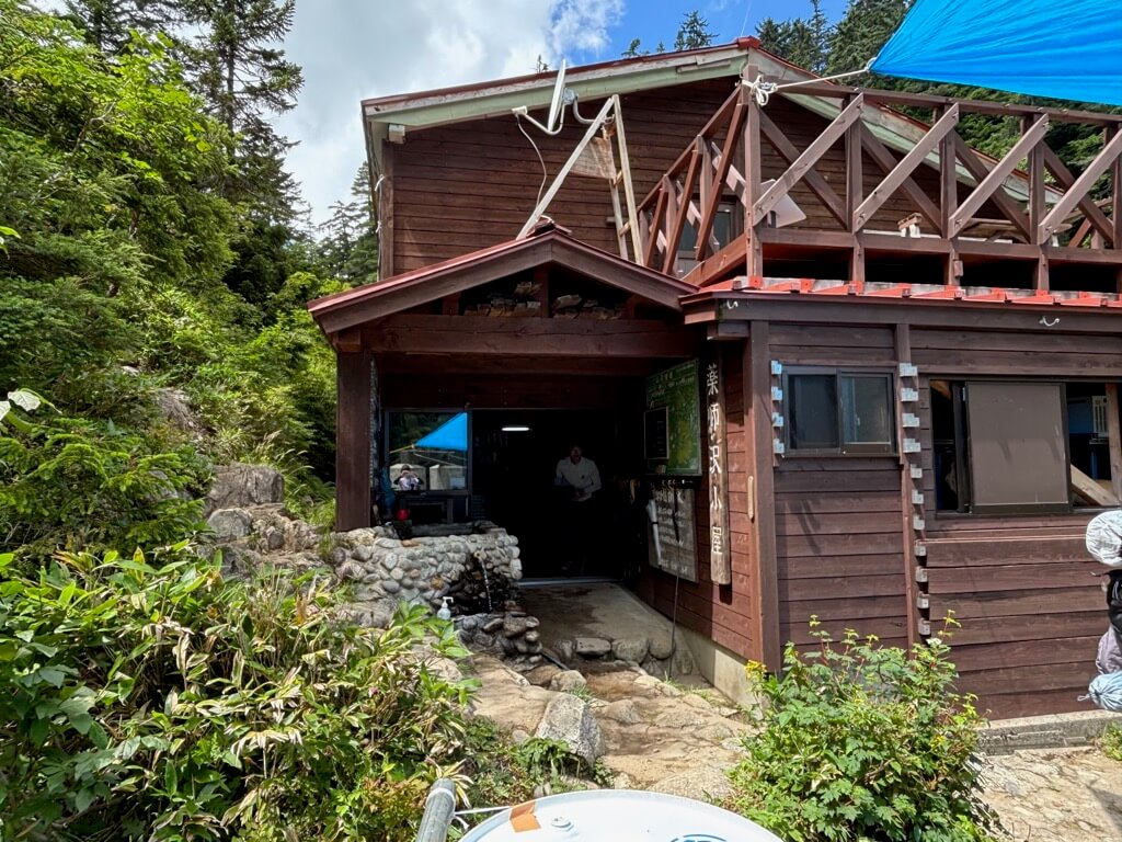 アクアブルーの沢沿いにある薬師沢小屋で宿泊