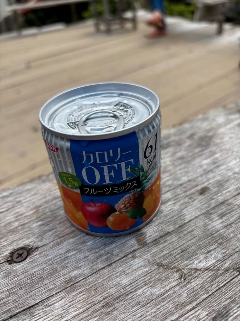 ここに来るまでたっぷり汗をかいたので、やっぱりフルーツ缶が食べたくなって、購入しましたw(いつもは太郎小屋で買って食べてる)