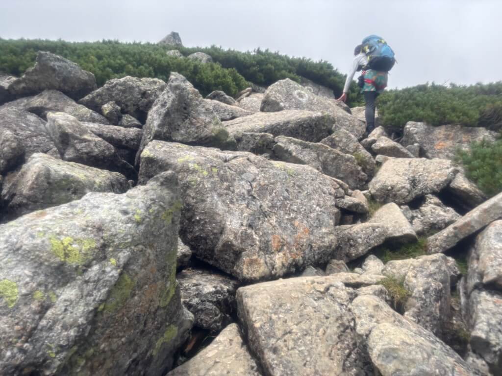 今日は太郎小屋に泊まるので、荷物はすべてザックに入れて持って移動するため、ザックの中にはモンベルのライトドライバッグを入れて、濡れては困るものをその中に収めました。