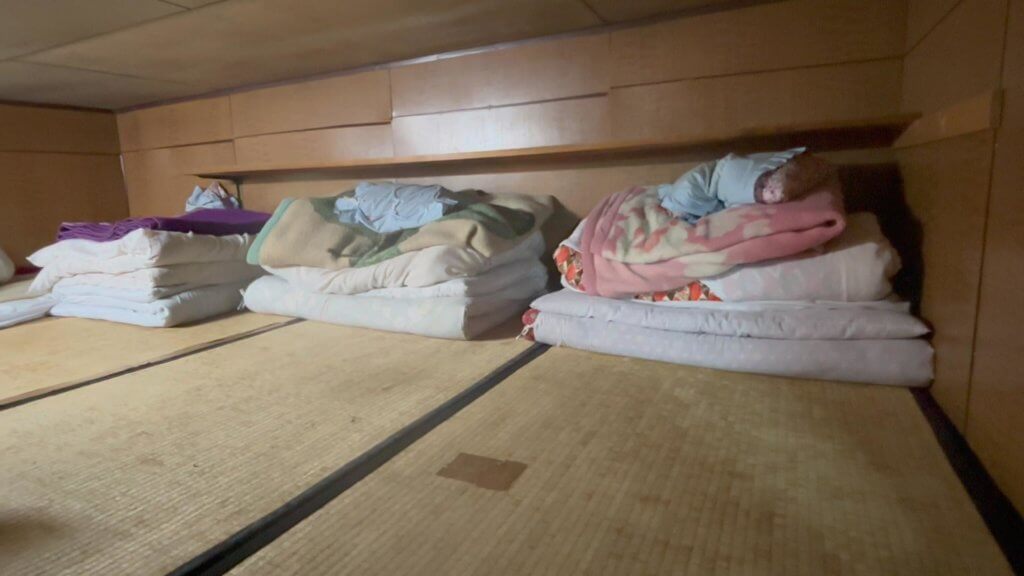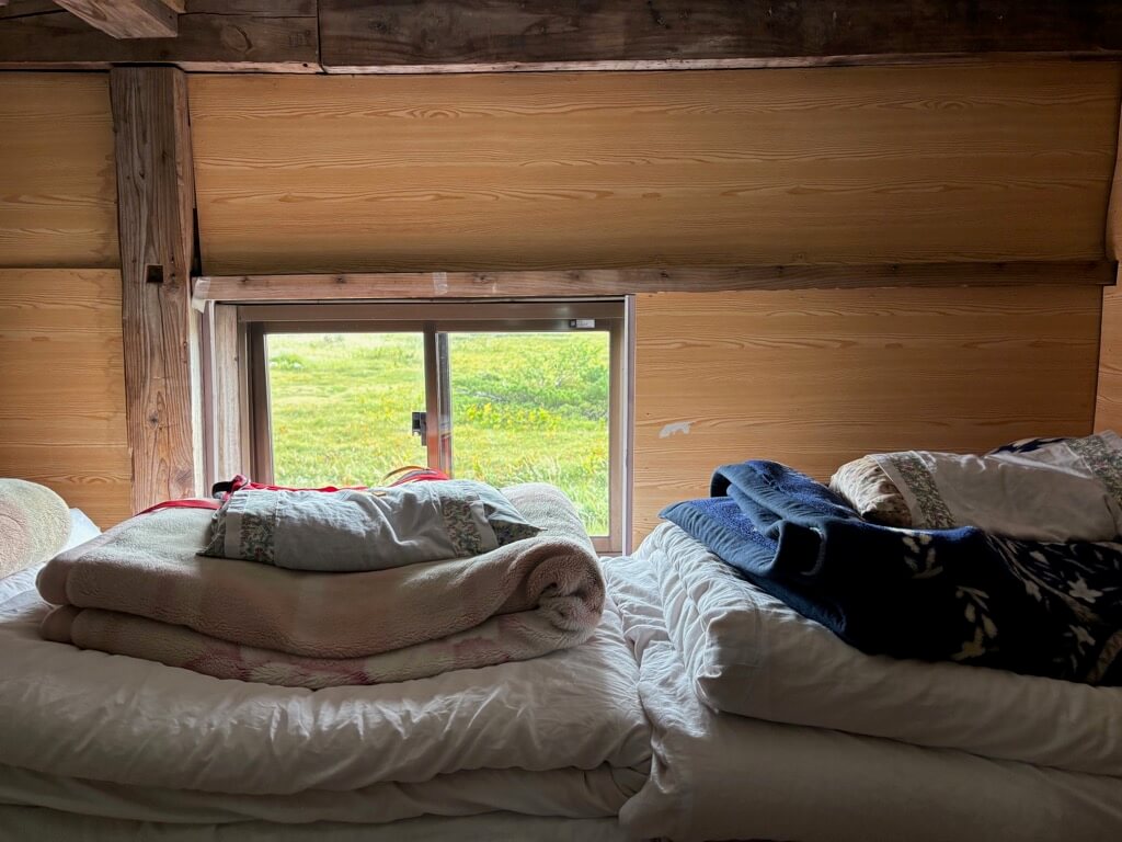 部屋は蚕棚の二段ベット。今回も2階になりました。窓がついて、明るい〜。
