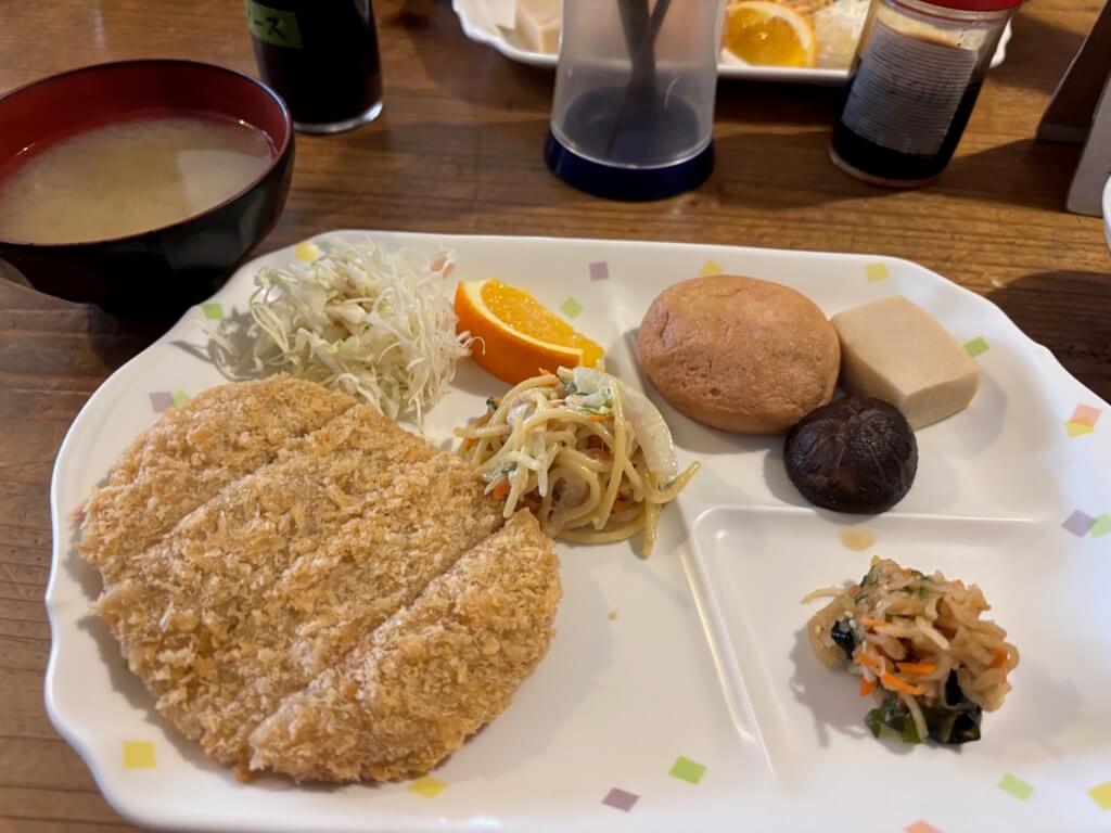 とんかつが出る山小屋は多いのですが、なかなかボリュームがあって、食べ応えがありました。