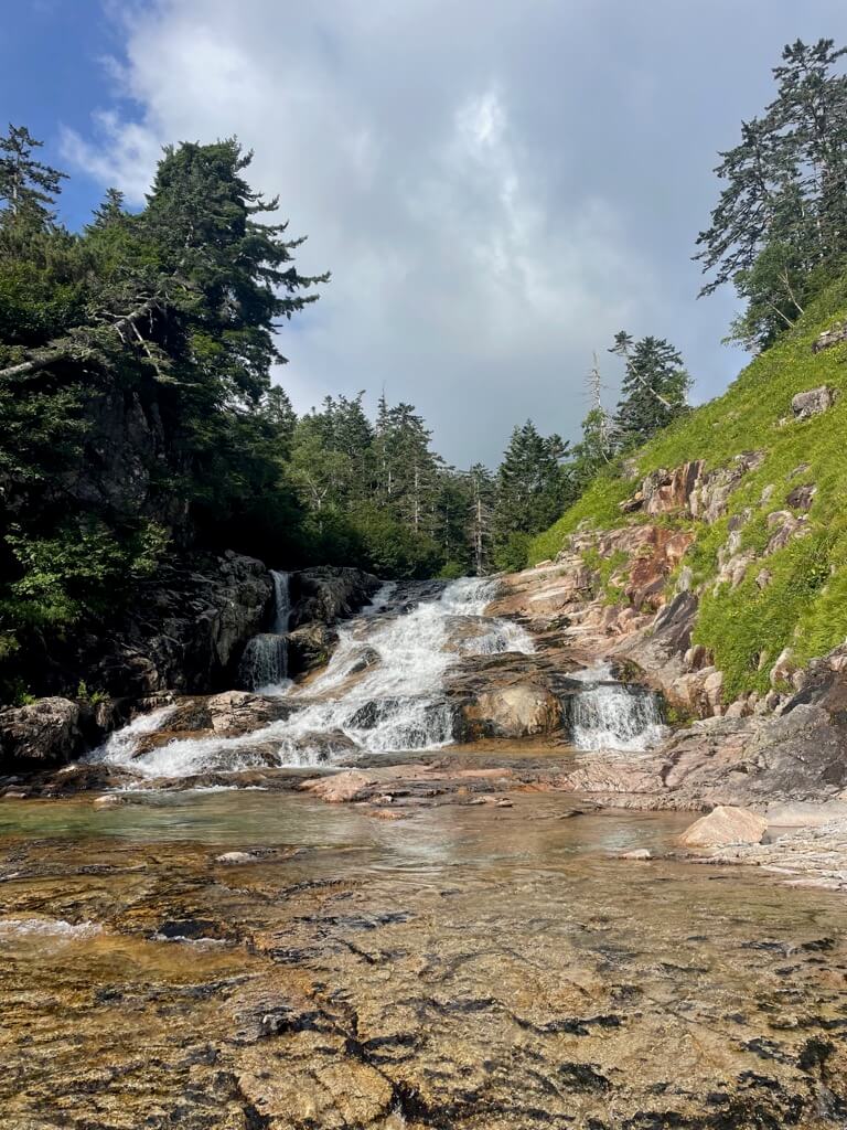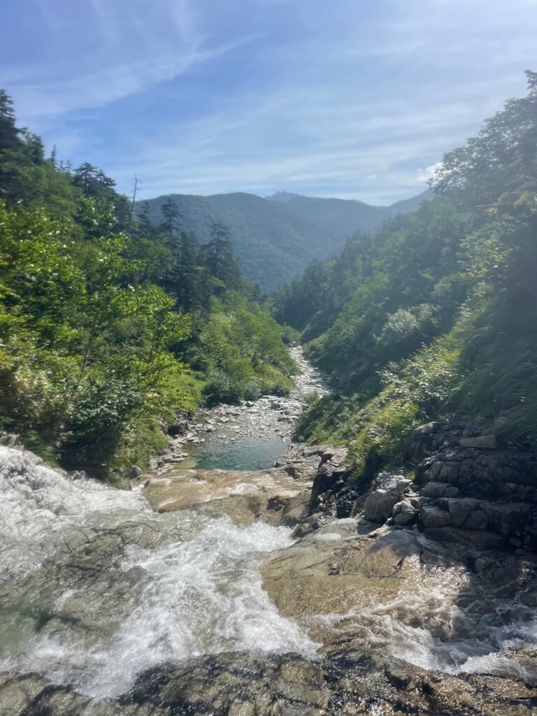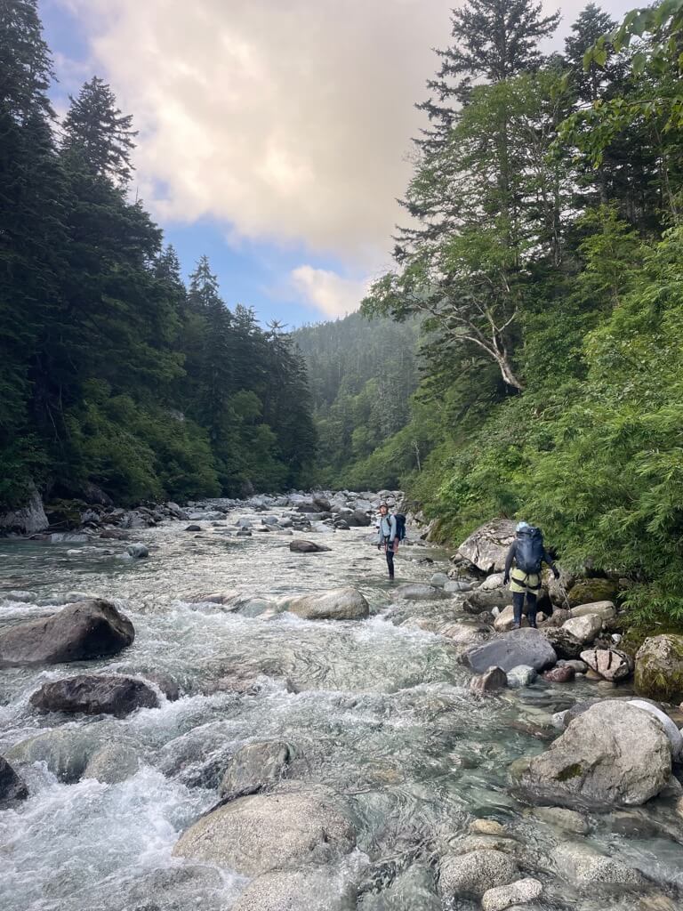 今回は薬師沢小屋に一泊し、翌日に赤木沢を遡行、赤木岳・北ノ俣岳を通って、太郎平小屋へ。太郎平小屋で1泊してから下山しました。真夏で水は冷たいので、少し暖かめの沢装備が必要だと思いました。