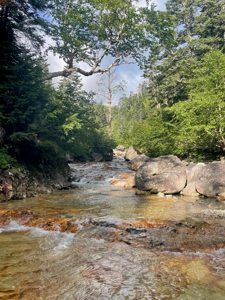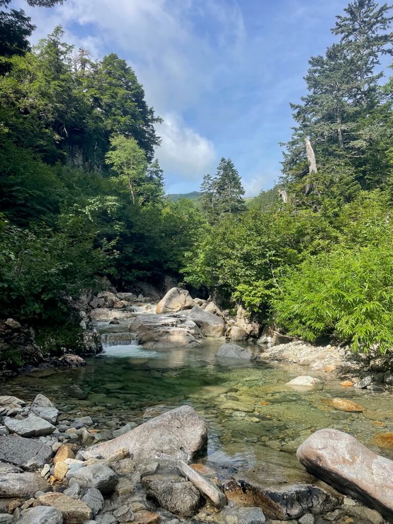 ガイドさんにサポートをしてもらいながら、何回か沢を渡りました。