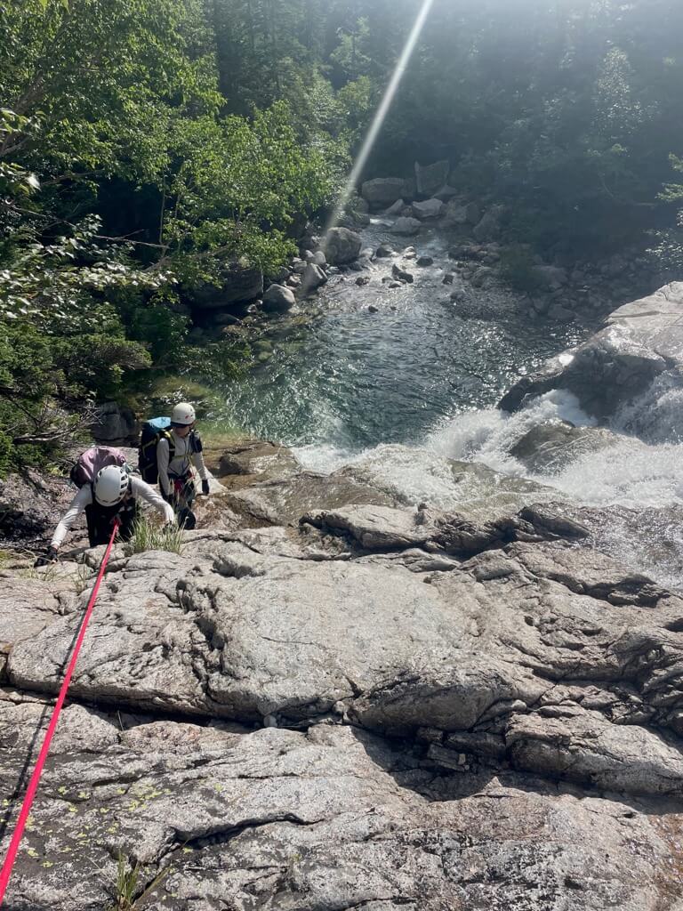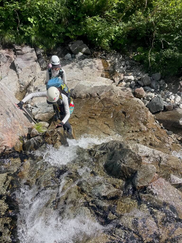ガイドさんの力強いサポートで、安心して沢登りが楽しめます。