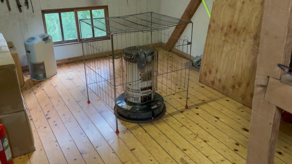 部屋は狭いので、小屋で使うものだけ布団脇に置いて、ザックなど大型の荷物は廊下においておきました。